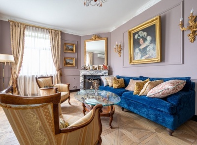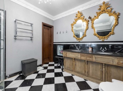Аренда 3-комнатной квартиры площадью 100 кв.м. Метро Киевская, 8 минут транспортом. Улица Мосфильмовская, дом 8. ЖК Дом на Мосфильмовской. Квартира полностью меблирована (Fendi, Fabio Novembre, Philippe Starck, частично антикварной и винтажной мебелью выполненной на заказ) , сантехника (villeroy & boch, частично на заказ) , бытовая техника на кухне ( Boch, Liebherr) . Эксклюзивный дизайнерский ремонт в стиле эклектики с элементами ар-деко. На полу: мрамор розовый (ванная), керамогранит черно-белый (гостиная-кабинет, коридор, гардеробная) , паркетная дубовая доска (спальня).