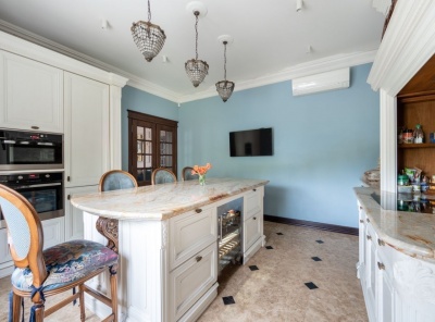 Продажа загородного дома общей площадью 420 кв.м. Новорижское шоссе, 27 км от МКАД. Коттеджный поселок Грин Хилл. Дом построен в 3 этажа из материалов премиум качества. В интерьере использован мрамор и массив дерева. Бытовая техника Liebherr, Kuppersbusch, Miele, мебель европейских брендов. Участок 15 соток, находится в центральной части поселка с видом на лес. Так же на участке с системой автополива и зоной отдыха, расположен банный комплекс в гостевой части которого расположен мангал, русская печь, тандыр. Высажены плодовые деревья и кустарники.