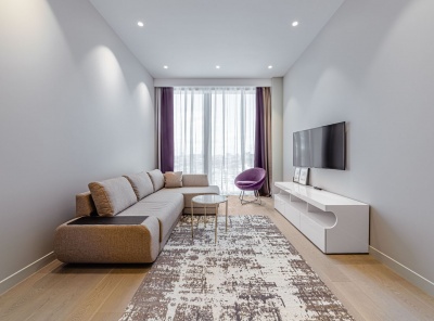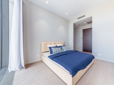 Аренда 2-комнатных апартаментов площадью 114 кв.м. Метро деловой центр,3 минуты пешком. 1-й Красногвардейский проезд 15 . ЖК Меркурий Тауэр . Квартира полностью меблирована. Дизайнерский ремонт. Вся необходимая бытовая техника. Эффективная система кондиционирования. Окна выходят на улицу. Планировка: Кухня - гостиная, спальня со своей гардеробной и ванной комнатой с панорамными окнами, с/у, прихожая.