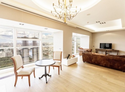 Аренда шикарной 3-комнатной квартиры, общей площадью 230 кв.м. Метро Белорусская, 9 минут пешком. Большой Тишинский переулок, дом 10с1. ЖК Дом на Тишинке. В квартире выполнен эксклюзивный дизайнерский ремонт в современном стиле. На полу паркетная доска, плитка с подогревом. Во всех комнатах установлены кондиционеры. Квартира полностью меблирована и оснащена всей необходимой бытовой техникой от мировых ведущих производителей. Из окон открывается панорамные виды на центр города. Одно машиноместо на подземном паркинге включено в стоимость.