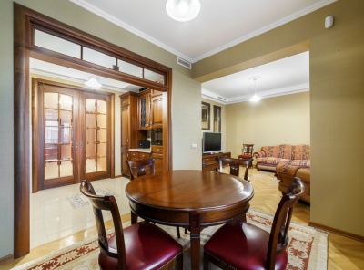Аренда 4-комнатной квартиры общей площадью 230 квадратных метров. Метро Библиотека им. Ленина 5 минут пешком, метро Арбатская 5 минут пешком. Квартира расположена в ТСЖ Романов переулок 5. Дом находится в шаговой доступности рядом с Кремлём. Заканчивается ремонт. Ремонт будет выполнен в светлых тонах с использованием натуральных материалов. Высокие потолки украшены подвесными люстрами и лепниной. Установлена итальянская кухня из дерева. Большие швейцарские окна с мраморными подоконниками и управляемыми жалюзи. .