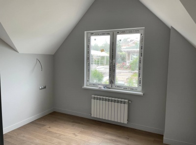 Продажа загородного дома площадью 200 кв.м. Новорижское шоссе, 27 км от МКАД. Коттеджный поселок Крона. Дом построен в 2 этажа. Фасад выполнен в классическом европейском стиле. Готовность под ключ. На участке 10 соток высажены плодовые деревья и кусты, завершается облагораживание парковки и навеса на 2 м/м. Все коммуникации центральные.Планировка:1 этаж — кухня-столовая-гостиная с выходом на террасу, спальня, сауна, с/у, котельная,2 этаж — 2 спальни с с/у и балконом, спальня, с/у.