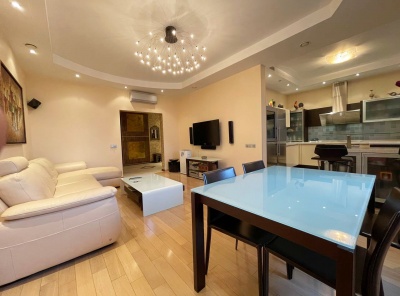 Продажа 3-комнатной квартиры площадью 125 кв.м. Метро Киевская, 7 минут транспортом. Адрес: Мосфильмовская д. 8. ЖК Дом на Мосфильмовской. Ремонт выполнен в спокойном современном стиле из экологически чистых материалов. Укомплектована всей необходимой бытовой техникой и сантехникой премиум-класса. Высота потолков 2.8 м. Окна выходят в тихий двор Планировка: кухня, гостиная, две спальни, две гардеробные, два с/у.