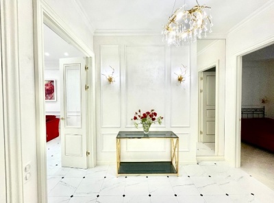 Продажа 5-комнатной квартиры площадью 160 кв.м. Метро Полянка, 5 минут пешком. Улица Малая Полянка, дом 12А. Квартира меблирована частично и оборудована все необходимой техникой, включая кондиционеры. В квартире выполнен качественный ремонт по индивидуальному проекту в классическом стиле. Большие шкафы-купе, телефон, интернет. Окна выходят во двор.Планировка: кухня-гостиная, 4 изолированные спальни, 2 с/у(джакузи и душевая), постирочная комната.
