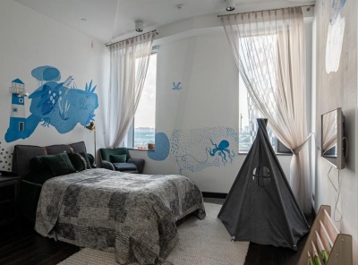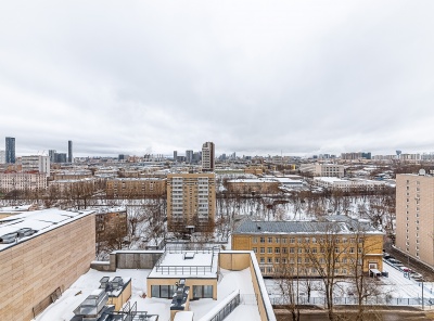 Продажа 3-х комнатной квартиры площадью 135 кв.м. Метро ул. 1905 года, 12 минут пешком. 2-я Черногрязская улица, дом 6к2 . ЖК RedSide. Пентхаус с предчистовой отделкой, витражным остеклением и террасой. Панорамные виды на всю Москву. Есть возможность установить в квартире камин. Высота потолков 7 метров. Планировка: кухня-гостиная, две спальни, две гардеробные, два с/у, лоджия.