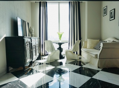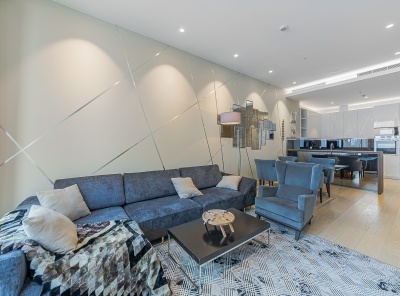 Продажа 3-комнатной квартиры площадью 100 кв.м. Метро Киевская 7 минут транспортом. Адрес: Мосфильмовская д. 8 ЖК Дом на Мосфильмовской. Выполнен эксклюзивный дизайн в стиле Ральф Лорен с элементами натурального камня. Полностью меблирована и укомплектована всей необходимой техникой бренда Miele, мебель итальянского производителя Scavolini, имеется сауна. В квартире установлены кондиционеры. Планировка: гостиная, кухня, спальня с отдельной гардеробной, санузел.