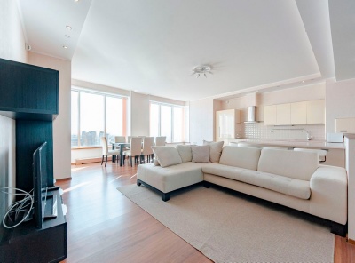 Продажа 3-комнатной квартиры 140 кв.м. с ремонтом. Метро Университет, 3 минуты пешком. Ломоносовский проспект, 25к1. ЖК Доминион. ВОЗМОЖНА РАССРОЧКА! Кухня оборудована современой бытовой техникой. Окна квартиры выходят на две стороны. Отличные виды на Цирк. Есть машиноместо в подземном паркинге, в стоимость не входит. Планировка: Кухня-гостиная-столовая, 2 спальни, 2 санузла, 2 гардеробные комнаты, постирочная.