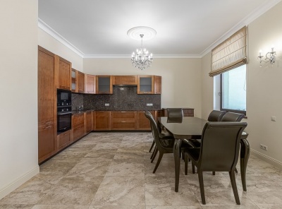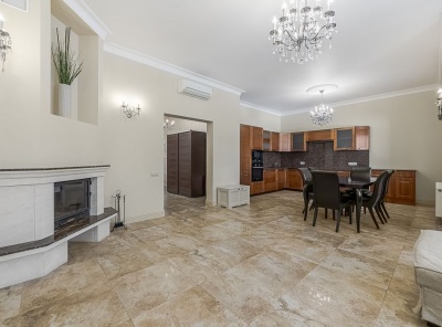 Продажа загородного дома площадью 350 кв.м. Новорижское шоссе, 23 км от МКАД. Коттеджный поселок Новорижский. Дом построен в 2 этажа из кирпича под ключ с мебелью. Выполнена качественная отделка в американском стиле с элементами эклектики. Дизайнерский свет, изготовленный на заказ. Меблировка от ведущих американских и итальянских производителей; часть предметов мебели и декора также выполнена на заказ. В доме эффектная архитектурная внешняя подсветка.