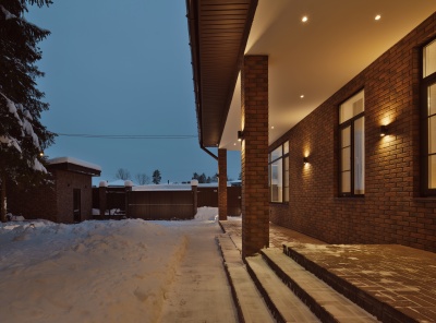 Продается впечатляющий загородный дом площадью 380 кв.м. Новорижское шоссе, 12 км от МКАД. Коттеджный поселок Липки. Этот одноэтажный дом - гармоничное сочетание современной архитектуры, уюта и продуманной функциональности, где каждая деталь подчеркивает статус, вкус и комфорт жизни. Фасад выполнен в благородной кирпичной кладке глубокого оттенка, который эффектно контрастирует с панорамными окнами и лаконичными линиями кровли, создавая выразительный, но сдержанный образ.