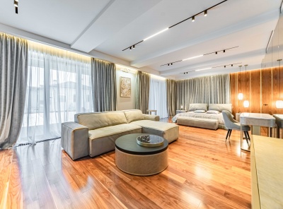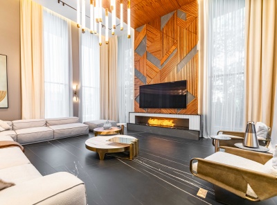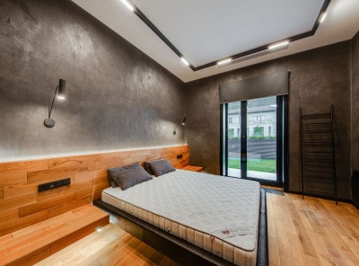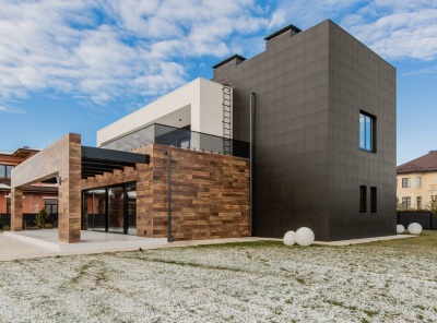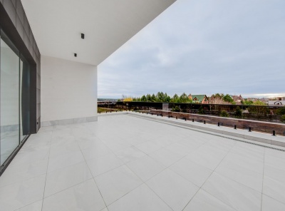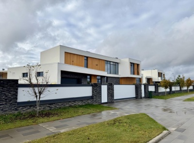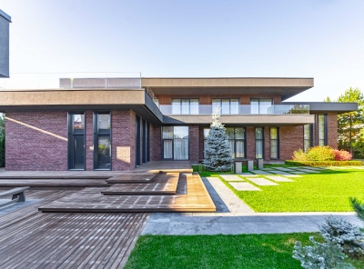 Продажа загородного дома общей площадью 540 кв.м. Новорижское шоссе, 18 км от МКАД. Коттеджный поселок Шато Соверен. Дом построен в 2 этажа по индивидуальному проекту. В отделке фасада преобладает натуральное дерево и плитка, в темное время суток подсветка фасада превращает дом в произведение искусства. В доме предусмотрена эксплуатируемая кровля и терраса, откуда открывается великолепный вид на ухоженный участок и посёлок. Дизайн интерьера выполнен в стиле ар-деко, где преобладает черно-белый контраст.