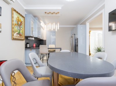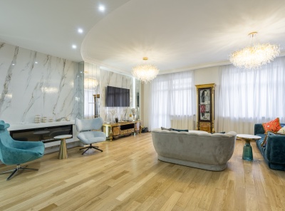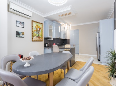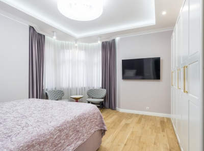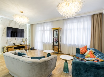 Аренда 3-комнатной квартиры площадью 170 кв.м. Метро Кузнецкий мост, 5 минут пешком. Дмитровский переулок, дом 7. В современном клубном особняке Петров дом. Квартира сдается с мебелью и оборудована всей необходимой техникой, включая кондиционеры. В квартире выполнен дизайнерский ремонт в неоклассическом стиле. Окна выходят во двор. В доме есть подземный паркинг, 2 машиноместа. Планировка: кухня-гостиная, 2 спальни, 2 с/у.
