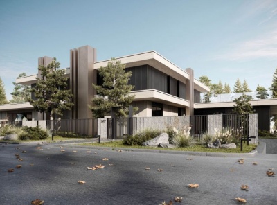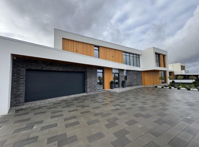 Продажа загородного дома общей площадью 595 кв.м. Новорижское шоссе, 17 км от МКАД. Коттеджный поселок Райт Хиллс. Этот современный дом впечатляет сочетанием лаконичной архитектуры и тёплой натуральности материалов: строгие геометрические формы фасада подчеркнуты гладкой белой штукатуркой, вертикальной облицовкой из дерева и вставками из камня, создающими гармоничный, но выразительный контраст.