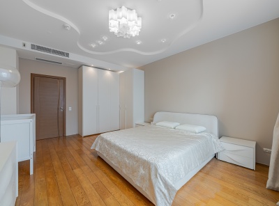 Аренда 4-комнатной квартиры площадью 219 кв.м. Метро Сокол, 12 минут пешком. Чапаевский переулок, дом 3. ЖК Триумф Палас. Светлая, уютная, тихая квартира с отделкой в современном стиле, которая выполнена из высококачественных экологичных материалов. Полы - массив дуба. Мебель - Италия. Кухня оборудована техникой Smeg, в том числе посудомоечной машиной. В постирочной техника Miele. Система приточно-вытяжной вентиляции c раздельным климат контролем обеспечит идеальный климат в квартире. 1 м/м включено в стоимость.