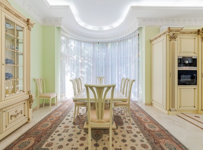 Аренда загородного дома площадью 400 кв.м. Коттеджный поселок Княжье Озеро. Новорижское шоссе 24 км от МКАД. Коттедж построен по каркасной технологии в 2 этажа и расположен в тихой части поселка у парка. Интерьер выполнен в классическом стиле. Участок 20 соток уложен газон, высажены плодовые деревья.