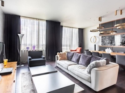 Продажа 3-комнатной квартиры, площадью 196 кв.м. Метро Минская, 4 минуты на транспорте. Адрес: ул. Мосфильмовская д.8. ЖК Дом на Мосфильмовской. В квартире выполнен дизайнерский ремонт с элементами натурального камня и дерева. Квартира полностью меблирована и укомплектована всей необходимой бытовой техникой и сантехникой. Мебель произведена по индивидуальному заказу в Италии. Имеет прекрасные видовые характеристики за счет высокого этажа и выхода на окон на две стороны. В ванной комнате установлено панорамное остекление.