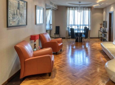 Продажа просторной 3-комнатной квартиры общей площадью 151 кв.м. Метро Ломоносовский проспект, 20 минут пешком. Улица Мосфильмовская 8. ЖК Дом на Мосфильмовской 8. В квартире выполнен новый ремонт по индивидуальному проекту в стиле современной классики, с использованием лучших материалов – травертина, мрамора, дерева. Установлена итальянская кухня. Окна в пол. Ремонт выполнялся из высококачественных материалов. Кухня OLD LINE изготовлена из массива дуба и массива вишни.