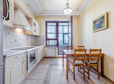 Продажа 4 - комнатной квартиры площадью 155 кв. м. Метро Ломоносовский проспект 10 минут пешком. Улица Мосфильмовская 70к1. ЖК Воробьевы горы. В квартире выполнен дизайнерский ремонт в классическом стиле из экологически чистых материалов. Квартира полностью меблирована и укомплектована всей необходимой бытовой техникой от ведущих мировых производителей: Итальянский кухонный гарнитур оборудован встроенной бытовой техникой Kuppersbusch. (плита, пароварка, духовойшкаф, посудомойка, вытяжка), встроенный винный шкаф Liebherr, холодильник Miele.