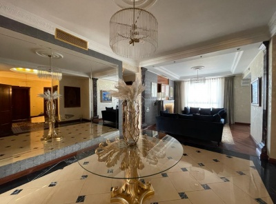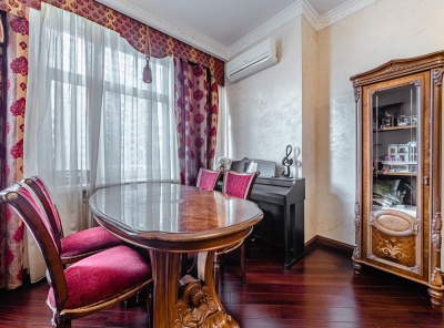 Продажа 5-комнатной квартиры площадью 187 кв.м. Метро Ломоносовский проспект, 10 минут пешком. Улица Минская 1Гк1. ЖК Золотые ключи-2. Квартира полностью меблирована. Уникальный дизайн в восточном стиле. Вся необходимая бытовая техника, кондиционеры, подогрев полов. Окна выходят во двоp и на поклонную гору. Есть лоджия. На подземном паркинге машиноместа.Планировка: кухня-гостиная-столовая, 2 спальни, кабинет, гардеробная, 2 с/у.