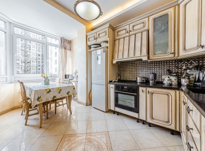 Продажа двухуровневой 3-комнатной квартиры площадью 140 кв.м. Метро Минская, 10 минут пешком. Улица Минская, дом 1Гк1. ЖК Золотые ключи 2. Эксклюзивный дизайнерский ремонт в современном классическом стиле. Квартира полностью меблирована и укомплектована всей необходимой бытовой техникой от ведущих мировых производителей. Подогрев полов. Система кондиционирования и климат контроля. Застекленная лоджия. Окна выходят во двор и на улицу. На подземном паркинге есть машиноместо.