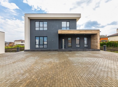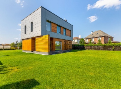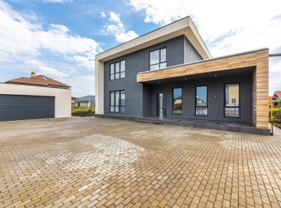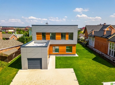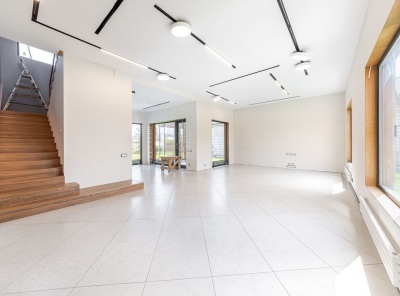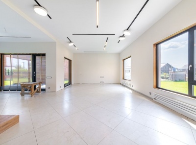 Продажа загородного дома площадью 420 кв.м. Новорижское шоссе, 23 км от МКАД. Коттеджный поселок Новорижский. Дом построен в 2 этажа из газоблока в стиле хайтек. Интерьер выполнен в современном стиле с панорамным остеклением. Все коммуникации разведены, первый этаж - теплые водяные полы. В котельной медная опресовка. Участок 15 соток в центре поселка, правильной формы. Ведутся работы по ландшафту. Парковка на 4 м/м, отдельностоящий гараж 60 кв.м. на 2 м/м. Все коммуникации центральные.