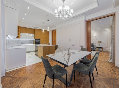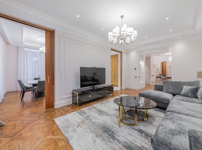 Аренда 3-комнатной квартиры площадью 106 кв.м. Метро Ломоносовский проспект, 20 минут пешком. Мосфильмовская 8. ЖК Дом на Мосфильмовской. Квартира полностью меблирована. Шикарный дорогой ремонт в стиле Барокко. Высокие потолки -3.3 м. Удобная планировка. Из окон открывается вид на Мосфильм, природный заказник Долина реки Сетунь, гольф-клуб. Планировка: кухня-гостиная, 2 спальни, 2 с/у.