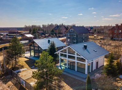 Продажа загородного дома площадью 183 кв.м. Новорижское шоссе, 24 км от МКАД, Красный поселок. Коттедж выполнен по авторскому проекту стиль Фахверк в 2020 году. Уникальная система остекления, увеличивает естественную освещенность помещений и превращает дом в изящный арт-объект (стекла, повышенной ударопрочности). В летний период времени, стекла отражают ультрафиолетовые лучи, что позволяет сохранить комфортный температурный режим, а в зимнее время, содержащийся в камере стеклопакета, аргон, препятствует его обмерзанию и теплопотере.