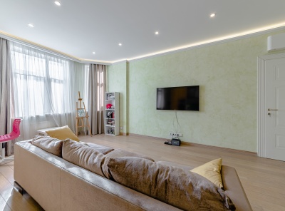 Продажа 2-комнатной квартиры площадью 83 кв.м. Метро Парк Культуры, 5 минут пешком. Хилков переулок, дом 1. ЖК Парк Палас. Ремонт в квартире выполнен в классическом стиле с применением высококачественных материалов. Квартира полностью меблирована (мебель из натурального дерева, делалась под заказ) и оснащена всей необходимой бытовой техникой от мировых ведущих производителей. Установлена система Умный дом. В стоимость входит одно машиноместо в подземном паркинге.Планировка: кухня-гостиная, спальня, 2 санузла, гардеробная.