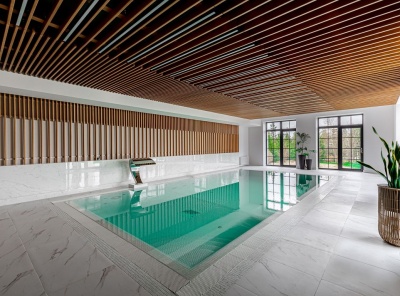 Уникальное предложение! Продажа загородной резиденции с бассейном площадью 1500 кв.м. Новорижское шоссе, 20 км от МКАД. Коттеджный поселок Резиденция Монолит. Участок 35 соток. Особняк построен по индивидуальному проекту. Выполнена эксклюзивная отделка из дорогих материалов. Мебель и освещение выполнены под заказ. Особняк расположен рядом с озером. Из окон открывается панорамный вид. Планировка: 1 этаж — холл с гардеробной, кухня - столовая, гостиная с камином банкетный зал, диванная, телевизионная, гостевой с/у.