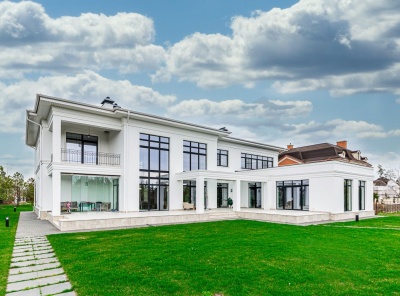 Продажа загородного дома общей площадью 1000 кв.м. Новорижское шоссе, 23 км от МКАД. Коттеджный поселок Агаларов Эстейт. Дом построен в 2 этажа, в стиле Ллойда Райта. Под ключ. Дом оснащен системой видеонаблюдения; предусмотрено помещение для охраны. Установлена система кондиционирования с возможностью дистанционного управления. Благоустроенный участок 32 сотки.