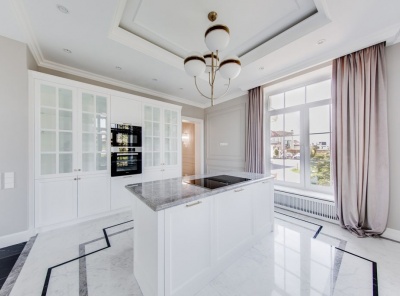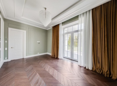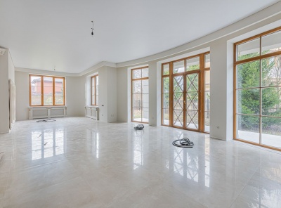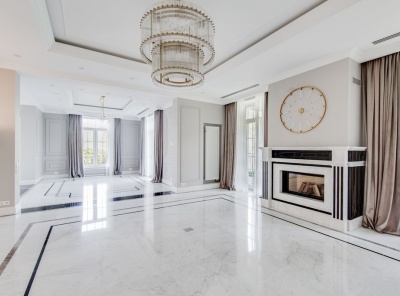 Продажа загородного дома общей площадью 420 кв.м. Новорижское шоссе, 19 км от МКАД. Коттеджный посёлок Миллениум парк. Дом построен в 2 этажа, под ключ , без мебели. Дом расположен в тупиковом месте с выходом в парк и к озеру. Спокойные классические интерьеры, все сделано с душой и со вкусом, в отделке использованы мрамор и натуральное дерево. Участок 15,6 соток.Планировка: 1 этаж - гостиная, столовая, кухня, терраса, постирочная, прихожая, с/у, спальня с с/у, котельная,2 этаж - 3 спальни каждая с гардеробной и с/у .