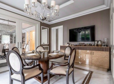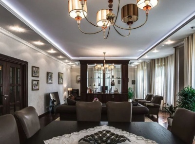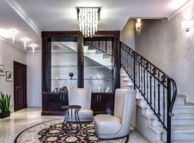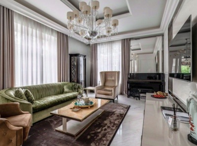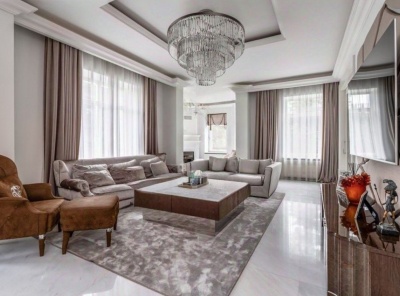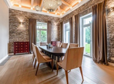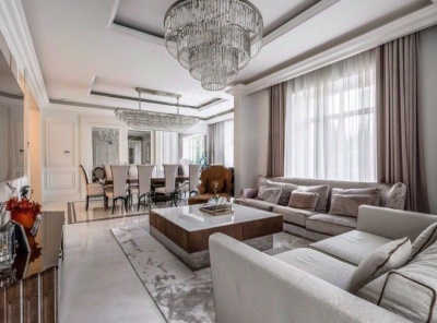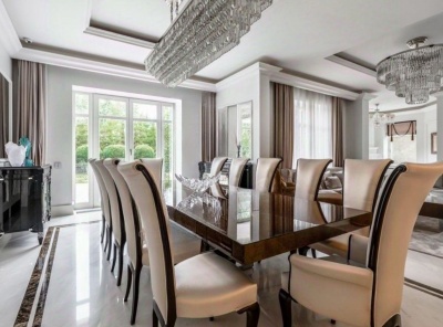 Продажа загородного дома общей площадью 487 кв.м. Коттеджный поселок Монтевиль. Новорижское шоссе, 24 км от МКАД. Коттедж построен в 2 этажа, с отделкой. В отделке использованы премиальные обои американских брендов, мрамор. Интерьер выполнен в стиле неоклассика. Особое внимание уделяется предметам искусства, декора и отделочным материалам. Большинство предметов мебели и элементов освещения выполнены на заказ.