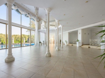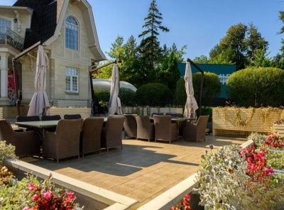 Продажа загородной резиденции общей площадью 2160 кв.м. Минское шоссе, 11 км от МКАД. Коттеджный поселок Довиль. Резиденция может использоваться как для бизнес целей (закрытый клуб/spa комплекс/клиника/гостиница и тд), так и для комфортной частной жизни для владельцев и топ-менеджеров компаний. Большой подогреваемый открытый бассейн с подсветкой для круглогодичного пользования, солевая сауна, зона для отдыха и барбекю. Большое количество комфортных и обустроенных переговорных приватного типа, большая бильярдная комната с библиотекой.