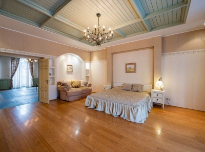 Продажа загородной резиденции общей площадью 510 кв.м. Коттеджный поселок Миллениум парк. Новорижское шоссе, 19 км от МКАД. Дом построен в 2 этажа, под ключ, с мебелью. Внешняя и внутренняя отделка в элегантном классическом стиле исключительно из дорогих материалов. Мебель - ведущие итальянские бренды, люстры и декор из Италии и Франции, на кухне встроенная бытовая техника Gorenje. На участке выполнен ландшафтный дизайн. Высажены хвойные деревья, кустарники, розарии, установлено дорогое освещение, есть фонтан, вымощены дорожки.