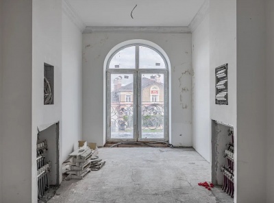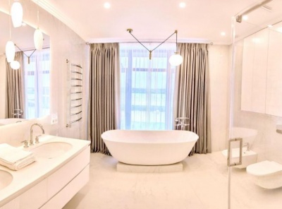 Продажа загородного дома общей площадью 644 кв.м. Новорижское шоссе, 18 км от МКАД. Коттеджный поселок Ренессанс Парк. Коттедж построен в 2 этажа. Под отделку. Две террасы с видом на парковую зону с озером. На участке 22,6 сотки расположена SPA-зона с бассейном и гараж на 2 м/м.Планировка:1 этаж - холл, гостиная, каминный зал, кухня, столовая, спальня с гардеробной и с/у, 2 этаж - холл, мастер спальня, 2 спальни с гардеробными и с/у, постирочная.