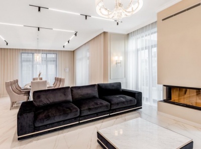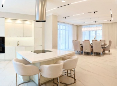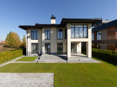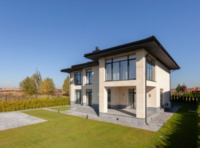 Продажа загородного дома общей площадью 399 кв.м. Коттеджный поселок Миллениум Парк. Новорижское шоссе, 19 км от МКАД. Коттедж построен в современном стиле в 2 этажа, под ключ. В облицовке использованы износостойкие премиальные материалы, которые сохранят вид через 50 лет и не потребуют ремонта. Это минеральная черепица, натуральный камень. Большие панорамные окна и высокие потолки пропускают в комнаты много дневного света. Участок 10 соток с удачным расположением и ландшафтным зонированием, которое создает камерную атмосферу уединения.