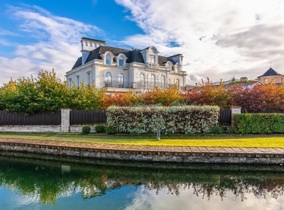 Продажа загородного дома общей площадью 770 кв.м. Новорижское шоссе, 19 км от МКАД. Коттеджный поселок Миллениум парк. Дом построен в 3 этажа в классическом стиле. В доме бассейн, большой зимний сад и выход к каналу. Практически из каждого окна открывается вид на воду. В доме высокие потолки и панорамное остекление. На втором этаже и мансарде расположены балконы. Есть гараж и квартира для персонала. Участок 32 сотки примыкает к каналу.