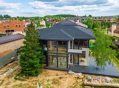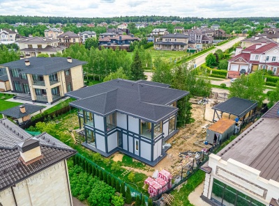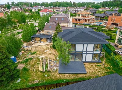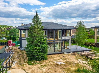 Продажа загородного дома площадью 430 кв.м. Новорижское шоссе, 24 км от МКАД. Коттеджный поселок Монтевиль. Дом построен в 2 этажа по Немецкой технологии в стиле современный Фахверк . Панорамные, ударопрочные со специальным напылением стеклопакеты вместо массивных стен наполняют дом светом и единением с природой. Внутренняя отделка помещений выполнена по индивидуальному дизайну с использованием ценных пород массива дерева и экологичных материалов. Участок 12 соток.