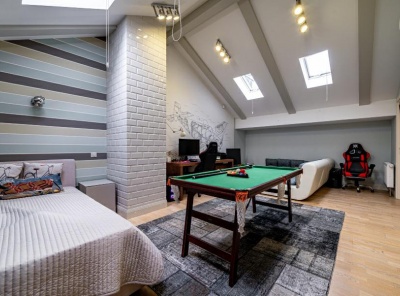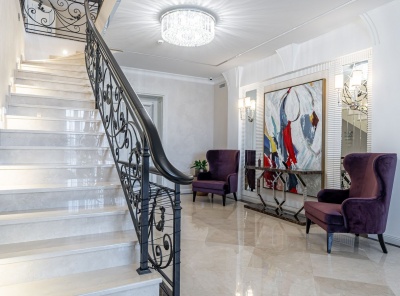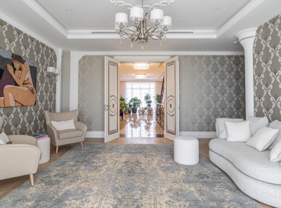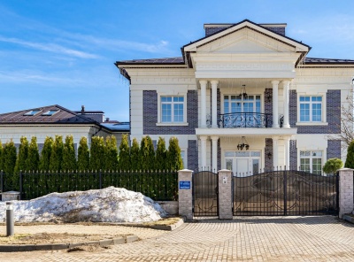 Продажа загородного дома общей площадью 1900 кв.м. Новорижское шоссе, 20 км от МКАД. Коттеджный поселок Агаларов Эстейт. Дом построен в 4 уровня из кирпича. Выполнена отделка под ключ в стиле американской классики с элементами Арт-Деко. Есть лифт на все 4 уровня. В отделке использованы натуральные и редкие материалы, мебель из авторских коллекций Италии, Франции и Германии, премиальная профессиональная техника. Приточно-вытяжная система вентиляции с центральным кондиционированием.