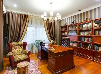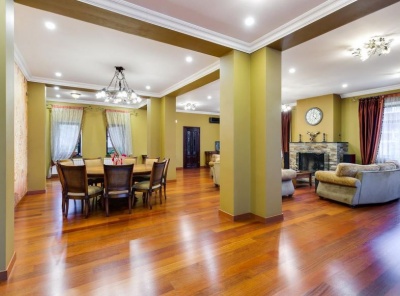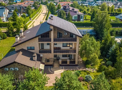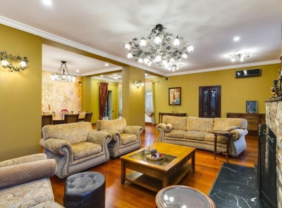 Продажа загородного дома общей площадью 1900 кв.м. Новорижское шоссе, 20 км от МКАД. Коттеджный поселок Агаларов Эстейт. Дом построен в 4 уровня из кирпича. Выполнена отделка под ключ в стиле американской классики с элементами Арт-Деко. Есть лифт на все 4 уровня. В отделке использованы натуральные и редкие материалы, мебель из авторских коллекций Италии, Франции и Германии, премиальная профессиональная техника. Приточно-вытяжная система вентиляции с центральным кондиционированием.