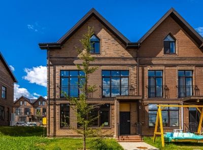 Продажа загородного коттеджа площадью 250 кв.м. Новорижское шоссе, 23 км от МКАД. Коттеджный поселок Новорижский. Таунхаус построен в 3 этажа. Фасад выполнен из травертина. Панорамное остекление. Терраса 55м2 с солнечной стороной. Участок 2.3 соток. Гостевая парковка на 2 м/м. Таунхаус расположен в центре поселка, с видом на центральное озеро.