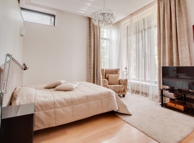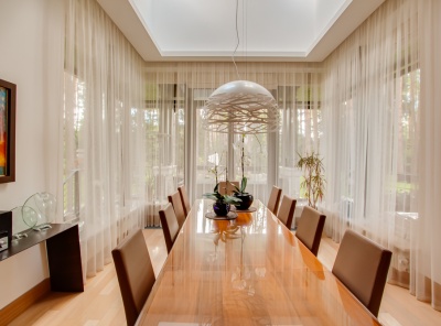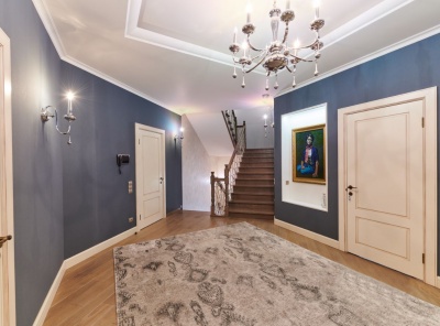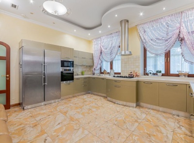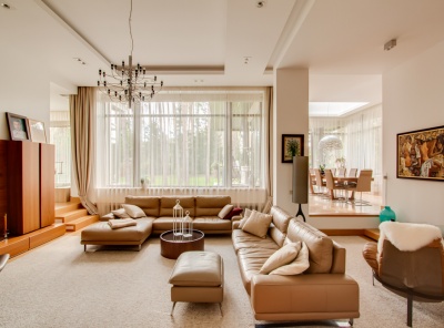 Продажа загородного дома площадью 420 кв.м. Новорижское шоссе, 23 км от МКАД. Коттеджный поселок Новорижский. Дом построен в 2 этажа из газоблока в стиле хайтек. Интерьер выполнен в современном стиле с панорамным остеклением. Все коммуникации разведены (материалы премиум класса), первый этаж - теплые водяные полы. В котельной медная опрессовка. Участок 15 соток, правильной формы. Ведутся работы по фасаду. Парковка на 4 м/м. Все коммуникации центральные.