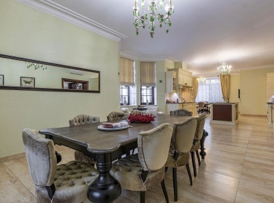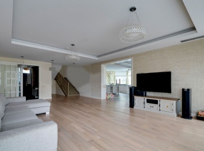 Продажа загородного дома общей площадью 450 кв.м. Новорижское шоссе, 29 км от МКАД. Поселок Борки. Дом построен из кирпича, по проекту все перекрытия монолит. Интерьер выполнен в классическом стиле с использованием натуральных материалов, массив дуба, камень. Участок 18 соток расположен в лесной части с возможностью выкупа еще 12 соток. Также на участке установлен дизель генератор на 18 квт. Парковка из брусчатки на 4 м/м. Все коммуникации центральные.