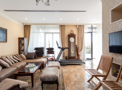 Аренда трехуровневого таунхауса площадью 577  кв.м. в районе Живописной бухты. Камерный коттеджный поселок в окружении лесного массива. Таунхаус под ключ, выполнен новый ремонт в светлых тонах, в современном стиле. Дом полностью меблирован дорогой и современной мебелью, установлена система центрального кондиционирования воздуха, панорамное остекление, Участок 6 соток.