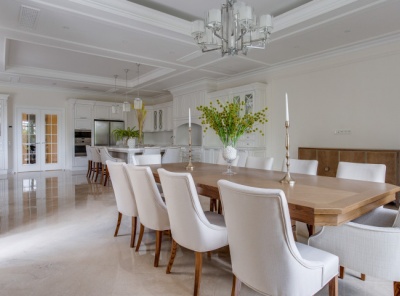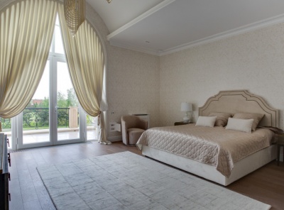 Аренда загородного дома общей площадью 398 кв.м. Новорижское шоссе, 23 км от МКАД. Коттеджный поселок Монтевиль. Коттедж построен в 32 этажа. В классическом стиле. Участок 20 соток недалеко от парковой зоны с рекой. На территории участка навес для авто, блок для персонала. Планировка:1 этаж: гостиная, кухня, столовая с выходом на террасу, с/у, гардеробная, с/у, котельная, гараж 2 м/м,2 этаж: спальня с с/у и гардеробной, 2 спальни с с/у, спальня.