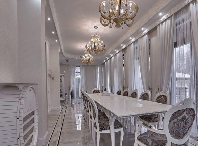 Аренда загородного дома общей площадью 1965 кв.м. Новорижское шоссе, 25 км от МКАД. Коттеджный поселок Агаларов Эстейт. Дом построен в 2 этажа из кирпича. Под ключ. Дом полностью меблирован, установлено кухонное оборудование и сантехника европейских производителей. На участке 78 соток выполнен качественный ландшафтный дизайн.