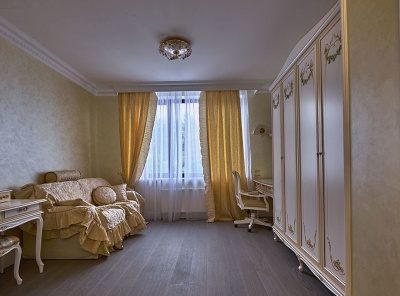 Аренда загородного дома площадью 800 кв.м. Новорижское шоссе, 18 км от МКАД. Коттеджный поселок Бенилюкс. Дом построен в 2 этажа по индивидуальному проекту. В доме установлена приточно-вытяжная вентиляция, система увлажнения, а также канальное кондиционирование и сплит- системы. На участке 35 разведена автоматическая система автополива, выполнен ландшафтный дизайн с озеленением и прудом, отдельно стоящая беседка с барбекю и дом для персонала 175 кв.м.