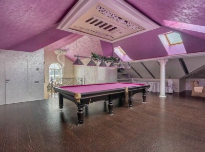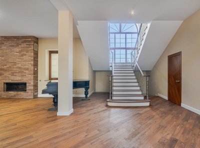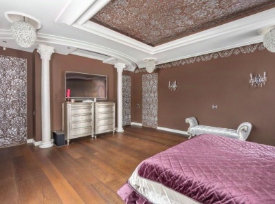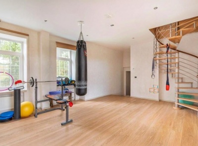 Аренда загородного дома общей площадью 500 кв.м. Коттеджный поселок Монтевиль. Новорижское шоссе, 24 км от МКАД. Коттедж построен в 2 этажа. Под ключ с мебелью. Вся мебель в доме - итальянская, полы - натуральное дерево. Просторный гараж на 2 машины. На участке помимо основного дома построена деревянная баня. Освещение участка, прудик, плодовые деревья, теплица. Площадь участка 25 соток.1 этаж - холл, спальня, кабинет, с/у, гараж на 2 м/м,2 этаж - холл, 4 спальни, 2 с/у, подсобное помещение, зал для занятий балетом,Мансарда - спортивный зал с тренажерами.