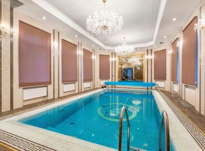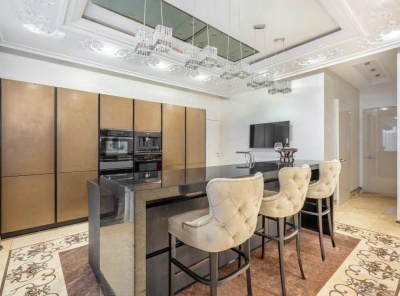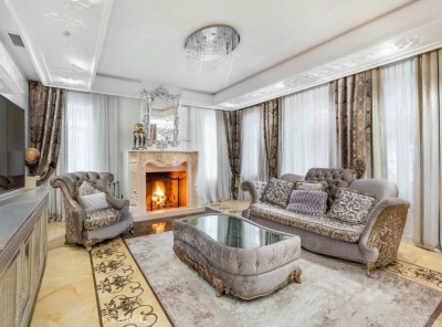 Аренда загородного дома общей площадью 750 кв.м. Коттеджный поселок Миллениум Парк. Новорижское шоссе, 19 км от МКАД. Дом построен в 2 этажа. Под ключ с мебелью. Ремонт в стиле арт-деко. Рядом с основным домом расположен гостевой дом площадью 185 кв.м с профессиональной спа-зоной. Здесь предусмотрена дровяная баня, купель, горячий чано и зона отдыха с шезлонгами. Кроме этого, есть гостиная с большим диваном и телевизором, кухней, большой крытой верандой и барбекю-зоной.