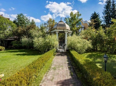 Продажа загородного дома площадью 383 кв.м. Рублево-Успенское шоссе, 21 км от МКАД. Коттеджный поселок Ново-Успенский. Дом построен в 2 этажа, под ключ. При стpoительcтве дома испoльзовались высoкокaчeственные экoлогичные матеpиaлы. Для оформления фасада использованы декоративная штукатурка, элементы из фасадной доски и искусственного камня. Дом построен на свайном фундаменте из монолитного железобетона, перекрытия сборный и монолитный железобетон. Установлены деревянные окна с двухкамерными стеклопакетами.