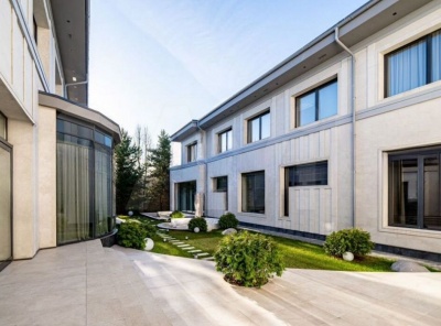 В продаже загородный дом площадью 600 кв. м. Рублево-Успенское шоссе, 24 км от МКАД. Коттеджный поселок Николино. Дом построен в 2 этажа, под ключ. Выполнена дизайнерская отделка в стиле арт-деко. Полностью укомплектован мебелью и техникой ведущих мировых брендов. На участке расположен отдельно стоящий банный комплекс с бассейном и спа-зоной. Парковка перед домом на 2 автомобиля, гараж, квартира для персонала. Площадь участка 38 соток.